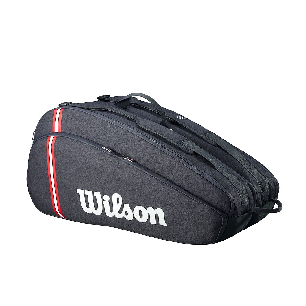 Wilson Tour 12 Pack Racket Bag - dwukomorowy bag na 12 rakiet, którego design inspirowany jest ponad stuletnią tradycją marki Wilson. Odświeżona sylwetka nadaje tej wszechstronnej i wielofunkcyjnej torbie elegancki i nowoczesny styl. Oferta dla graczy turniejowych i hobbystów, którzy cenią sobie wygodę i komfort.