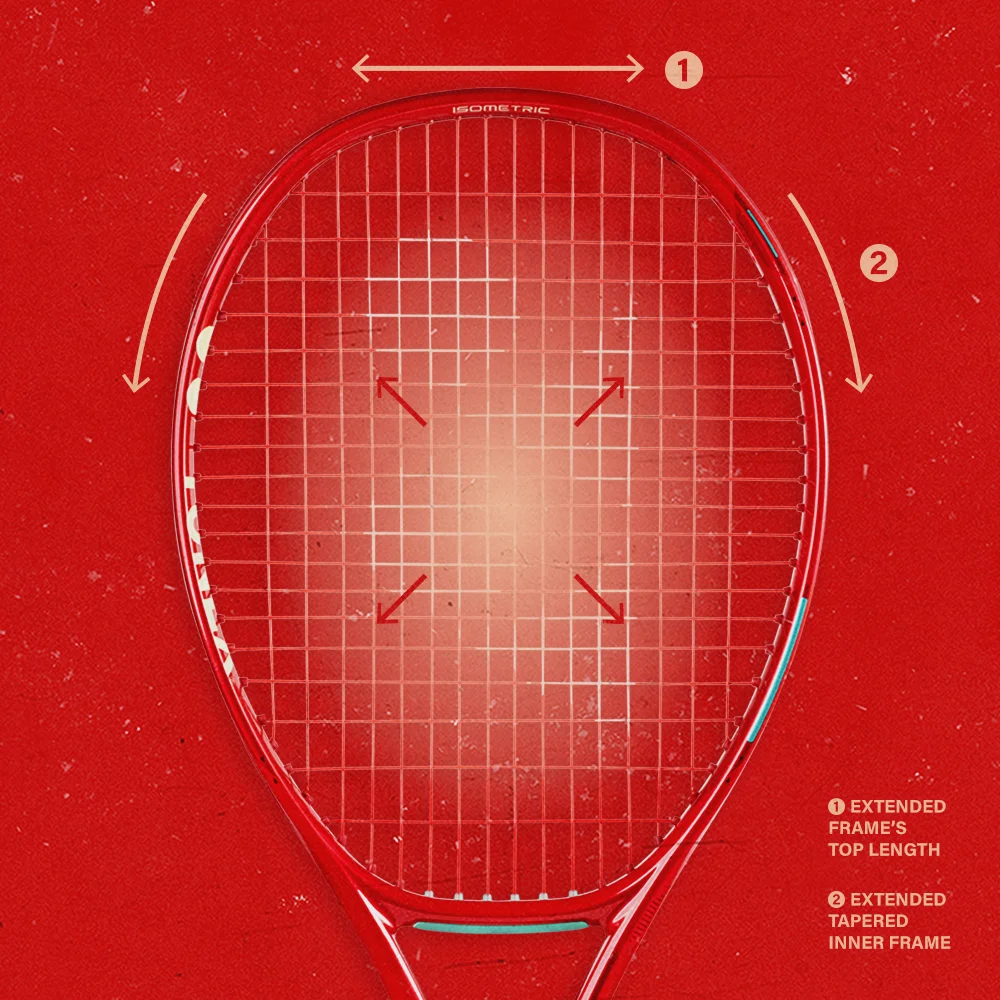 SWEET SPOT - Nowa, ulepszona konstrukcja górnej ramki VCORE pomaga zminimalizować liczbę niecelnych uderzeń i zmaksymalizować rotację. 1. Wydłużona górna część ramki dla większego sweet spotu 2. Wydłużona, zwężająca się wewnętrzna ramka dla lepszej elastyczności i wbijania piłki do kieszeni