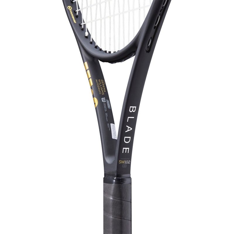Rakieta Wilson Blade 102 SW Autograph - oddaje hołd nieustannemu dążeniu Sereny Wiliams do utrwalenia jej dziedzictwa nie tylko jako niezrównanej mistrzyni na boisku, ale także jako inspiracja transformacyjna dla wielu przyszłych pokoleń. Unikalny projekt rakiety obejmuje błyszczące złote wykończenie oraz kilka inspirujących słów na wewnętrznej stronie ramy, które opisują niesamowitą drogę Sereny do sławy. Serena zleciła Wilsonowi Pro LABS opracowanie rakiety, która zwiększy kontrolę bez poświęcania jej legendarnej mocy. W rezultacie stworzono ramę z nieco mniejszym rozmiarem główki dla dodatkowego wyczucia.