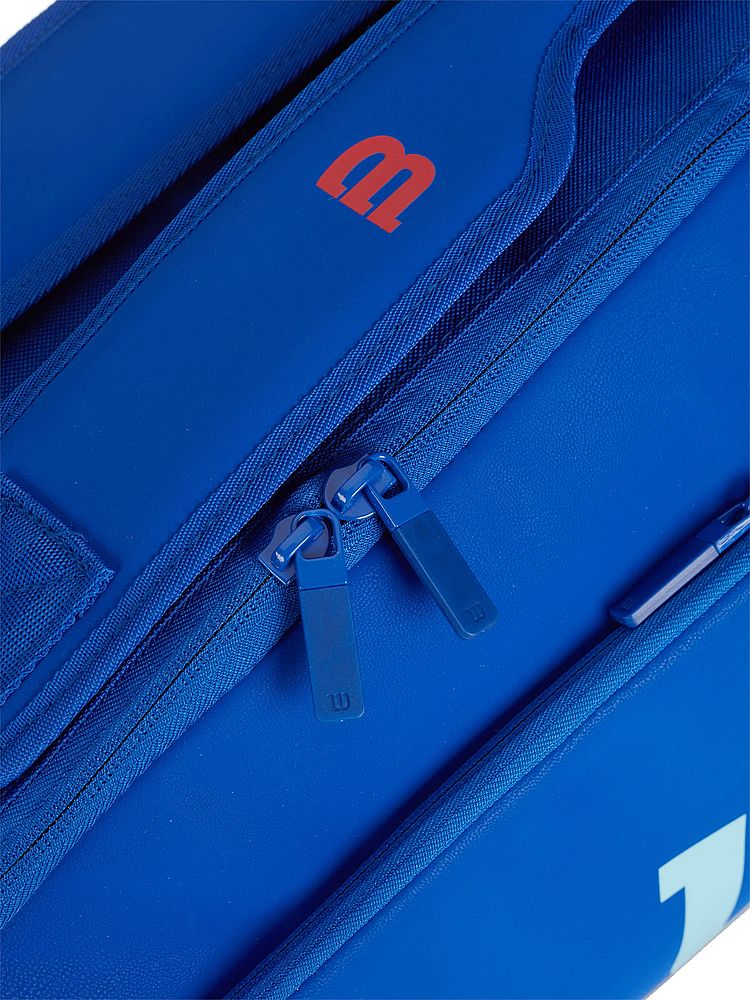Wilson Ultra V5 Tour 6 Pack Racket Bag - wysokiej jakości torba na rakiety. Dwukomorowy, funkcjonalny i precyzyjnie wykonany bag dla graczy turniejowych i hobbystów, którzy cenią sobie wygodę i komfort. Design spójny z kolekcją rakiet Wilson Ultra v5.