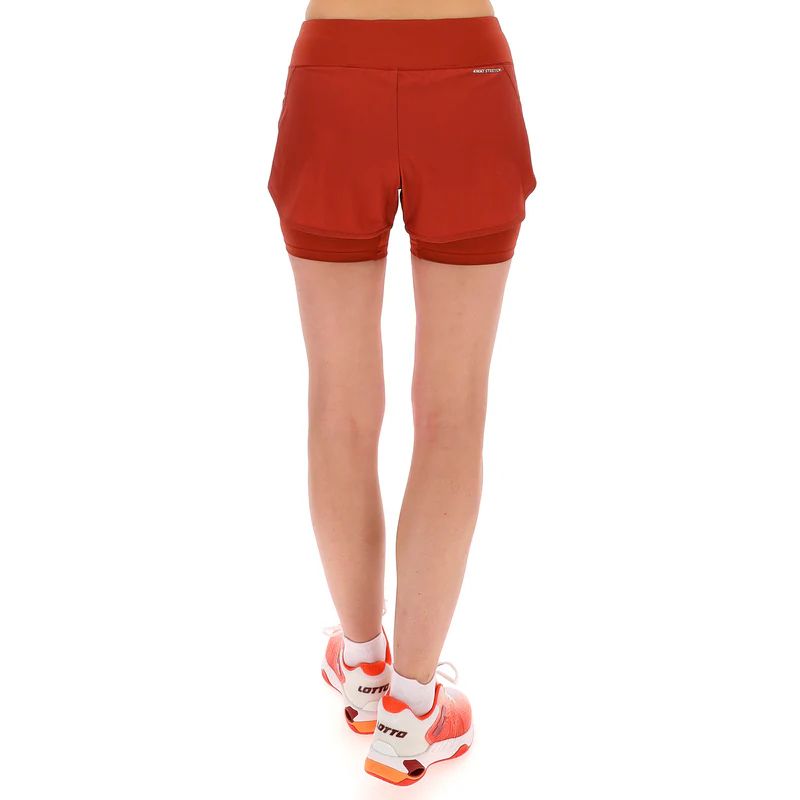 Lotto TECH II-D1 Short Women - damskie, krótkie spodenki sportowe typu 2w1. Modny krój, dwie warstwy spodenek oraz elastyczna tkanina 4Way Stretch zapewnią komfort i wygodę w trakcie gry.