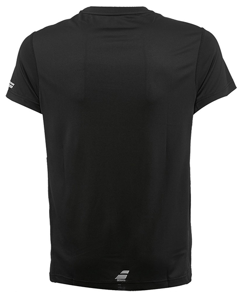 Koszulka treningowa wykonana z miękkiego, przyjemnego w dotyku poliestru. Jest łatwa w praniu i szybkoschnąca. Włókna Fiber Dry umożliwiają skuteczniejsze odprowadzanie wilgoci i nadmiaru ciepła z dala od skóry. Luźny krój i krótkie rękawy nie ograniczają ruchów podczas gry. Płaskie szwy nie powodują otarć i podrażnień naskórka. Okrągłe wycięcie pod szyją wzmocnione taśmą. Kontrastowa grafika i napis Babolat.